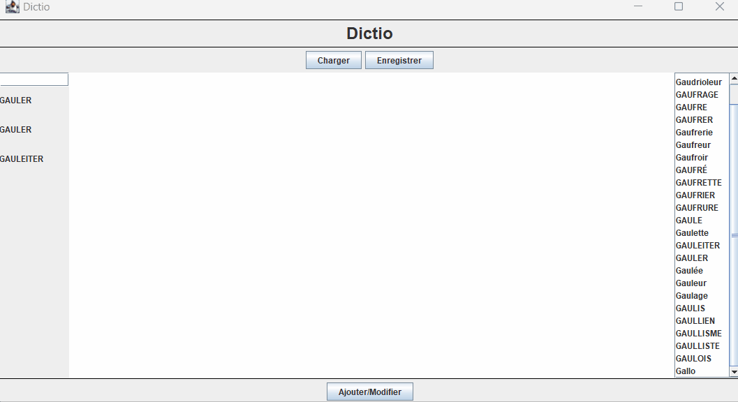 Pour facilité cette fonctionnalité, j'ai utilisé un arbre lexicographique pour enregistré tous les mots.