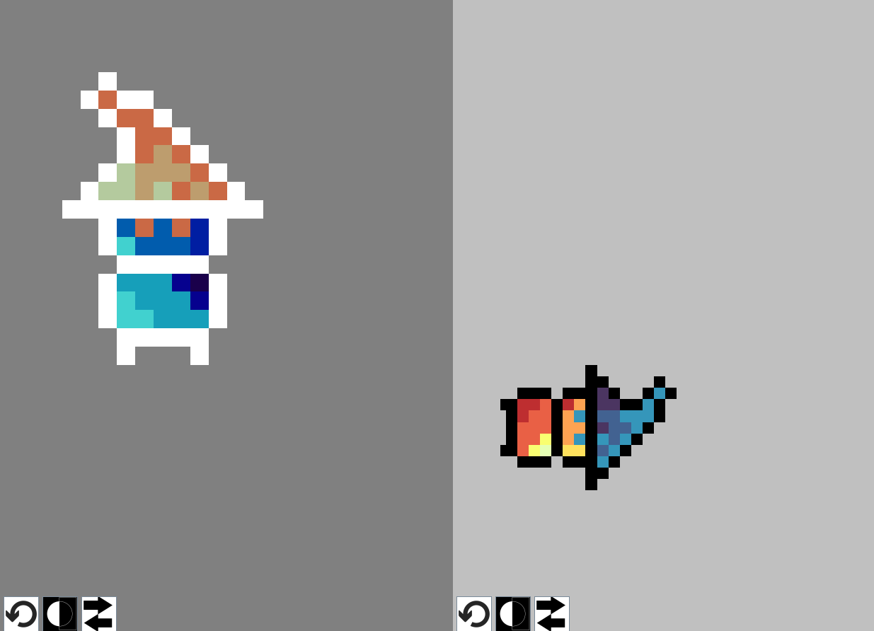 Les fonctionnalités comprennent: translation et zoom de l'image, une fonction miroire, une fonction inversement de couleur et un undo/redo